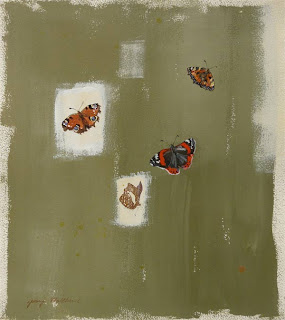 Jenny Matthews's watercolour paintings are evocative of summer and her style reminds me of Elizabeth Blackadder who was one of her tutors at ECA. This summer in France we were 'fluttered' a lot by butterflies and moths passing so close that their wings skimmed against you, this experience is what Jenny's paintings remind me of.