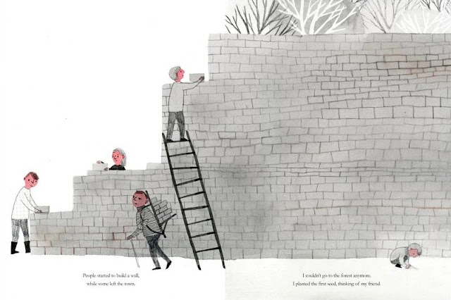 This is an illustrator found on the Illustrators wall at Bologna, her name is Sophia Han who is based in Anyang, Korea. Her work is very varied and has been used extensively commercially. These images are from her children's book, 'Into the Forest'. I like the variety of line and texture but also the contrary layout of the bottom image.