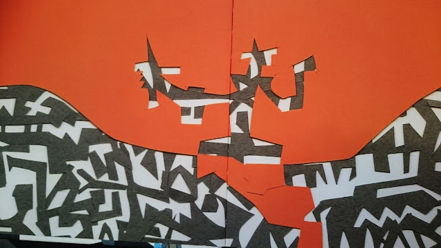 work is always strikingly inventive in this book Cavalcavia he has collaged cut coloured paper to create intricate patterns on the horses and knights charging across the pages.