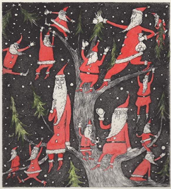 A flurry of Santas like snow by