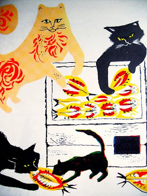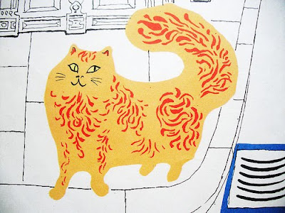 I haven't posted any classics of children's illustration for a while. Most charity shops I go to no longer really stock any children's books, and if they do they only keep main stream ones.However I was compelled to buy 'The Cat Thief' by Joan Cass, illustrated by William Stobbs when I saw it on Sheila Moxley's blog. I am not disappointed with my purchase the pictures are great.