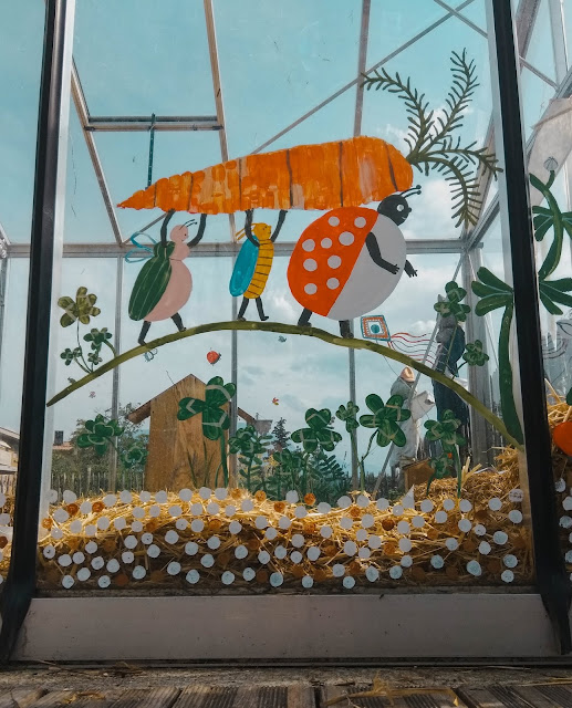 This project brought me such joy, at first because it was presented with illustrations first I thought Elisa was working in collage or onto photographs. However, this was a project decorating the glass of a greenhouse and it is really charming to see the illustrations layered between the internal and external space.