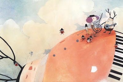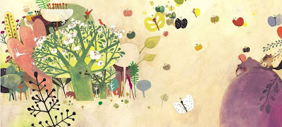 I was looking for something Autumnal to share today and I rediscovered Korean illustrator Eunsil Chun. Eunsil's delicate works often have a feeling of autumn because of their palette but also because she often uses fallen leaves and branches to lead you through her illustrations.