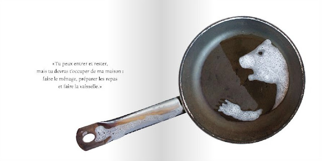 The colours and textures of some of Gek Tessaro's spreads remind me of Brian Wildsmith's work. But also in his compositions and use of collage of Eric Carle's. This Italian illustrator has published many many books in a multitude of styles. Foremost he is a great story teller and his storytelling crosses the genres of children's books into the theater.