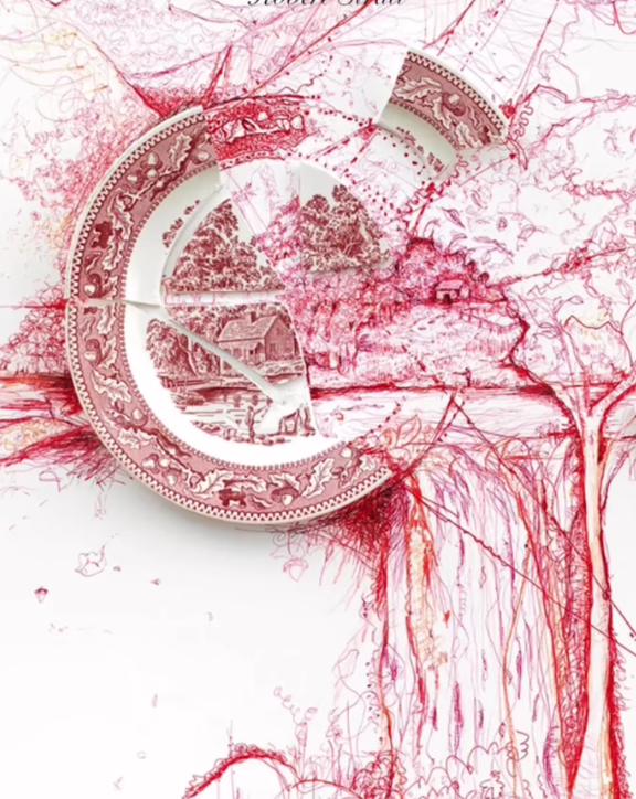 "This work was inspired by a plate from my wife's late mother, Barbara. One day it was dropped and shattered. Some time after, I picked up a pen and started working on the "Fragmented" series, exploring the possibilities of things broken and the stories that can evolve from them." Robert Strati