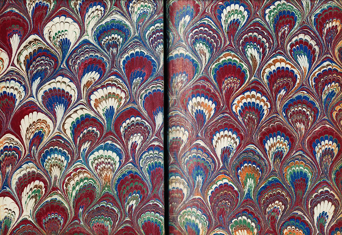 Above: Hirsch J.1890 from the British Library. Below: Marbled endpaper from an 1875 copy of Die Nachfolge Christi by Thomas von Kempis